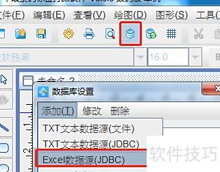 在条码打印软件中,点击顶部工具栏的数据库设置按钮,弹出设置对话框后点击添加,选择EXCEL数据源类型,随后点击浏览,选中目标Excel文件并打开,最后进行测试连接以确认导入成功。