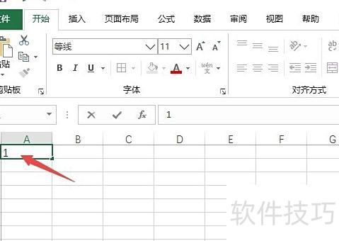 打开电脑和Excel,选择任一单元格输入数字1,所示。