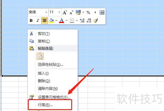 右键点击,从菜单中选择行高选项。