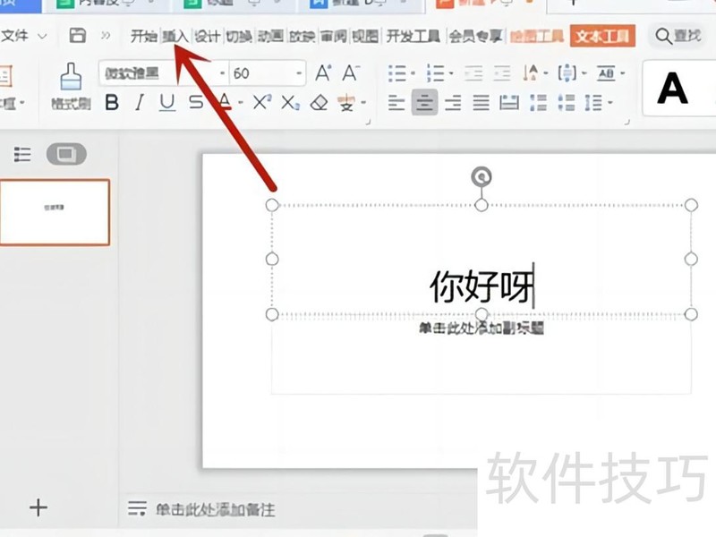 打开PPT,选择插入功能。