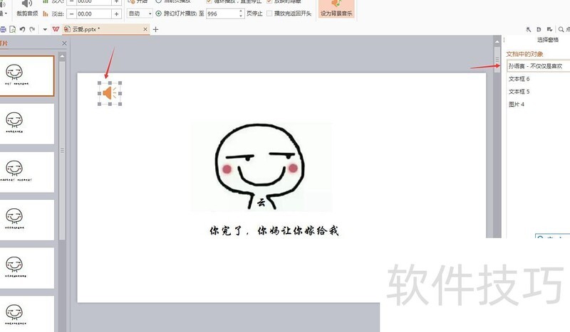 删除PPT中音频的方法