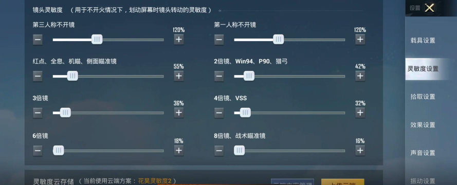 建议使用灵敏度云存储方案快速导入设置,方便玩家在不同设备间切换,节省调试时间。