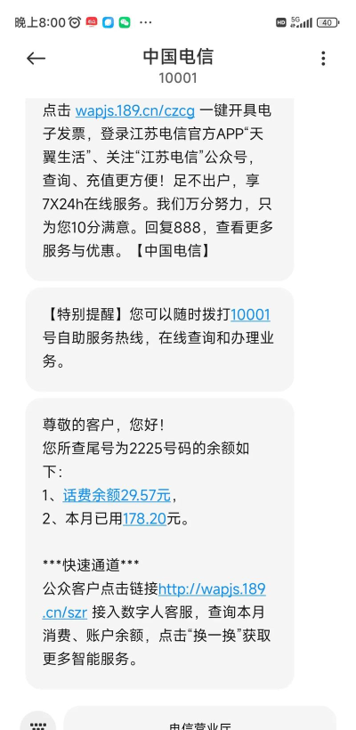 电信短信查询话费