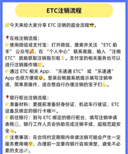 ETC注销流程包括前往银行网点或服务网点,携带身份证、行驶证、ETC设备等材料,按步骤完成注销操作,部分需多次跑网点。
