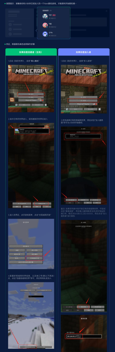 联机步骤包括创建世界、对局域网开放、发送虚拟端口或邀请好友,具体操作因联机方式而异,需按教程执行。