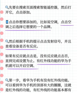 华为手机空调控制需在智慧生活App中添加设备,对准接收头按电源键完成配对,操作简单便捷,适合智能家居用户快速上手。