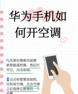 华为手机通过红外遥控功能实现空调控制,支持多种机型,如P30 Pro、Mate20等,用户可通过智慧生活App添加设备,对准接收头按电源键完成配对,实现远程操作。