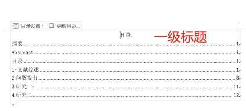 毕业论文标题目录自动生成方法 STEP1: 在word文档页面中,把输入符放在一级标题上,然后在"开始"菜单下顶部目录索引框中点击"标题1".(如下图) STEP2: 把输入符放到二级标题上,点击目录索引框中的"标题2".(如下图)...