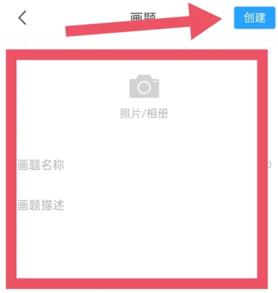 3、在画题广场点击右上角“创建”按钮,在文本框中输入画题名称,选择画题类型(如普通画题或高级画题),点击“创建”即可完成。