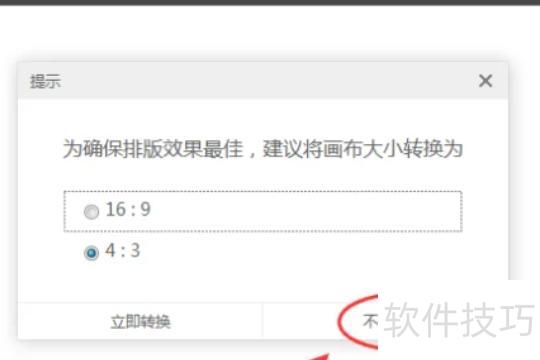 接下来导入PPT课件,方法与之前相同。导入后会弹出提示:需注意希沃课件比例为16:9,而PPT通常为4:3,因此应选择转换为16:9比例,以确保符合希沃课件的显示要求。