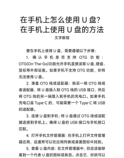 U盘在手机上使用需通过OTG功能或无线技术,支持OTG的手机可直接连接U盘,部分手机需开启OTG功能并使用兼容数据线,实现数据快速传输。