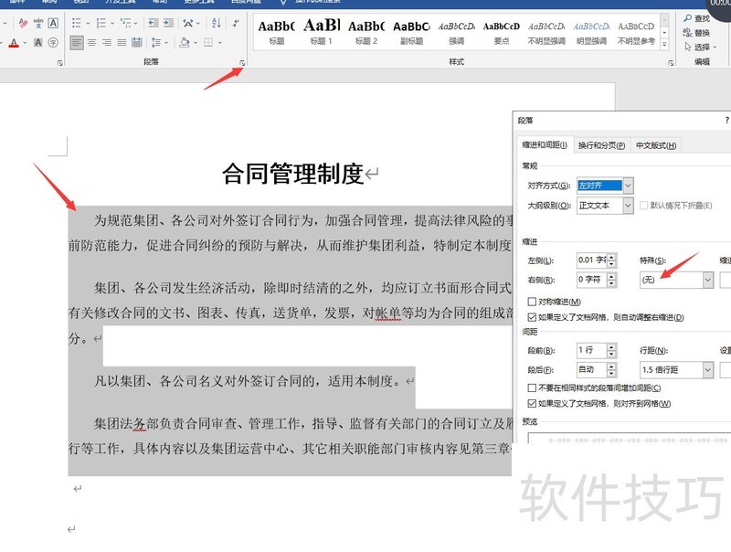 删除序号后文档结构混乱,可直接选中文档,进入段落设置,将缩进改为无。