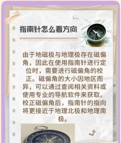 指南针在航海、探险等场景中广泛应用,帮助确定方向,结合地图使用可提升导航准确性,尤其在无手机信号时尤为重要。