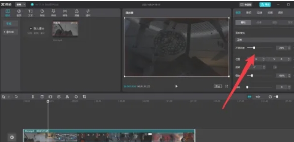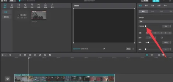 点击需要调整透明度的素材(轨道会高亮显示)。点击顶部菜单栏的 「画面」 选项卡(图标为矩形框内带小太阳)。或右键轨道上的素材,选择 「画面」 直接进入设置。在右侧「基础」分类下,找到 「不透明度」 滑块(默认值为100%,即完全不透明)。