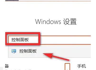 在设置页面中,搜索“控制面板”并点击打开。
