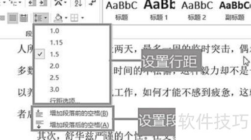 行距是指相邻两行文字之间的距离,段落间距则是指相邻两个段落之间的空隙,以段落为单位计算。段落间距包含段前距和段后距,可灵活自由地进行设置,便于排版调整。