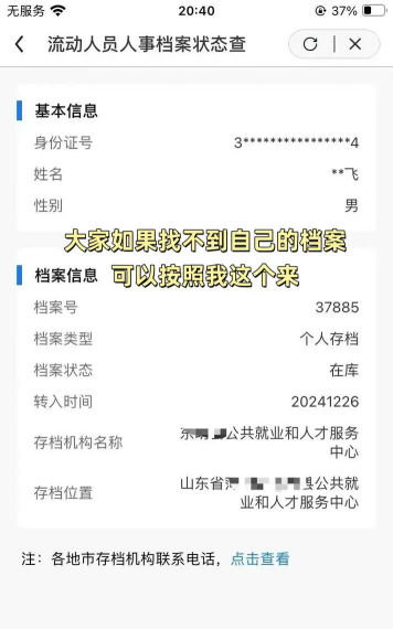 个人档案查询可通过全国人社政务服务平台(http://zwfw.mohrss.gov.cn)注册后,在“跨省流动人员人事档案管理服务”专栏查询。也可联系原毕业学校、户籍地或工作单位所在地的人才中心、人力资源公共服务机构。