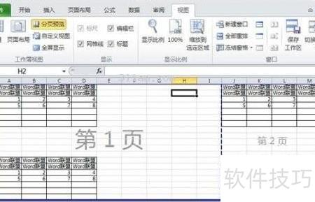切换到视图选项卡,点击工作簿视图中的分页预览按钮。