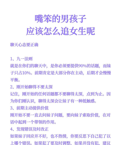 1.和女生聊天的初期查户口两个人还不熟的时候,查户口是一个让人很反感的行为,如果不是魅力特别强,查户口基本就是直接死掉.正确做法:收集谈资,...