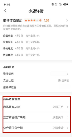 - 首先打开【快手】-【设置】 2. 打开【快手小店】 注意: 关闭快手商品售卖功能后意味着: A. 一段时间内不可提交开店申请即不能交易快手商品(包含挂其他平台商品的权限)。 B. 部分重要权益会立即时效 6. 点击【继续】 关闭前账号需满足3个条件: A. 账户不存在异常即未在违规期间 B. 不存在未发货、未签收或未成团订单,无售后订单 C. 账户余额已清空 7. 勾选【已阅读】并点击【下一...