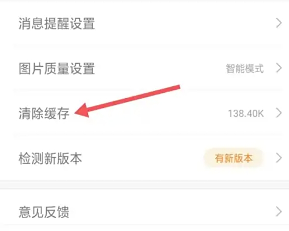 2、在设置页面中找到「清除缓存」选项,点击后就可以清除缓存。