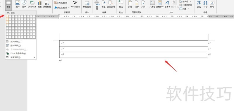 请看示例图,点击插入→表格→拖选创建单个表格框。
