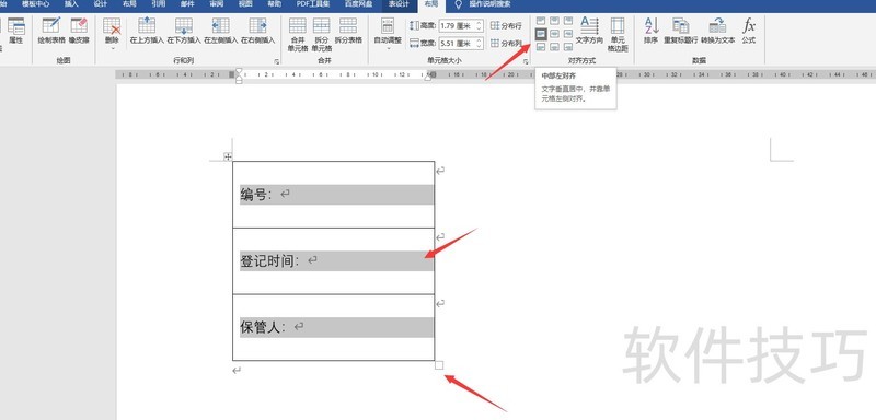 拖动边框调整表格大小,输入文字后点击布局中的居中按钮。