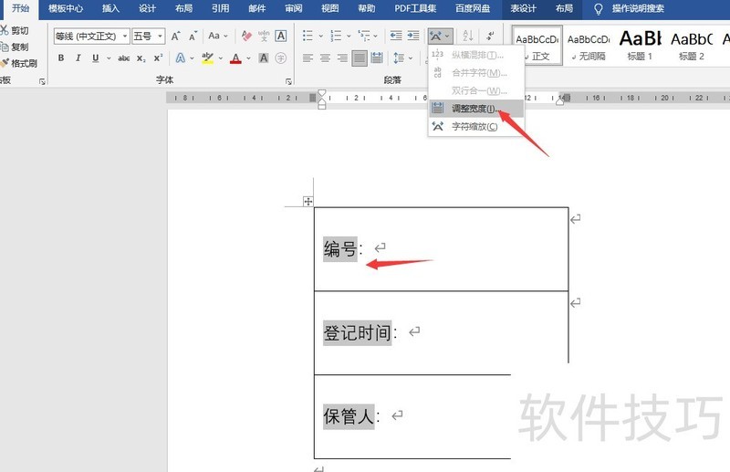按住Ctrl键选择文字(不含符号),点击中文版式,调整宽度即可。