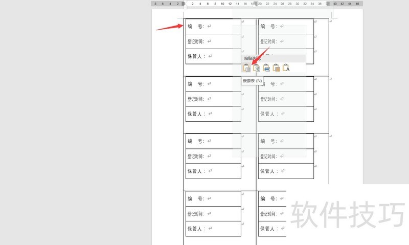 点击首个单元格,右键选择性粘贴,插入嵌套表格。