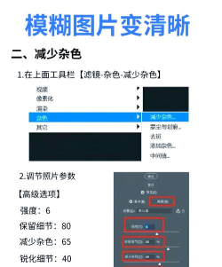 不清晰的图像可以通过图像锐化调整。如果里面的字不清晰也可以把里面的字重新打一遍 在图层上选择需要的部分—>滤镜—>锐化—>VSM/进一步锐化/锐化 4、...