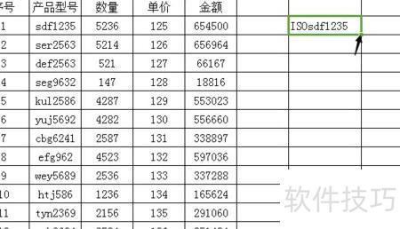 首先打开需修改的Excel表格,例如在产品型号栏前统一添加IOS前缀。