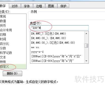 选择自定义,在类型中输入ISO@,点击确定即可。