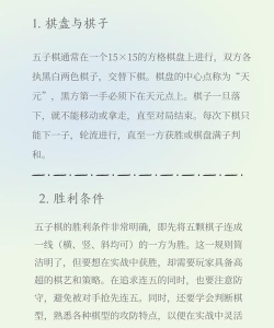 五子棋棋盘布局多样,玩家需掌握基本技巧,如通过做棋制造VCT或VCF,或学习开局定式,以提高胜率。