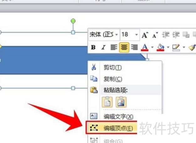 选中箭头后右键点击,从菜单中选择编辑顶点选项。