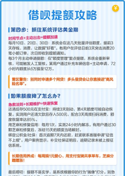 借呗额度提升需避免逾期、保持账户活跃度,同时注意征信查询次数,以免影响信用评分和额度评估结果。