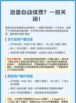 迅雷自动续费关闭入口通常隐藏在支付软件(如支付宝、微信)或迅雷App的支付管理中,需仔细查找并操作关闭,避免因忘记导致续费。