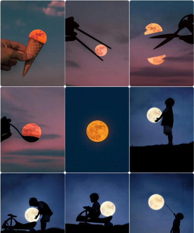 拍摄月亮需选择明亮环境,避免光线不足导致噪点多,同时利用水面等前景元素增强照片效果。