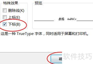 在弹出的设置框中,勾选特殊效果下的下标,然后点击确定。