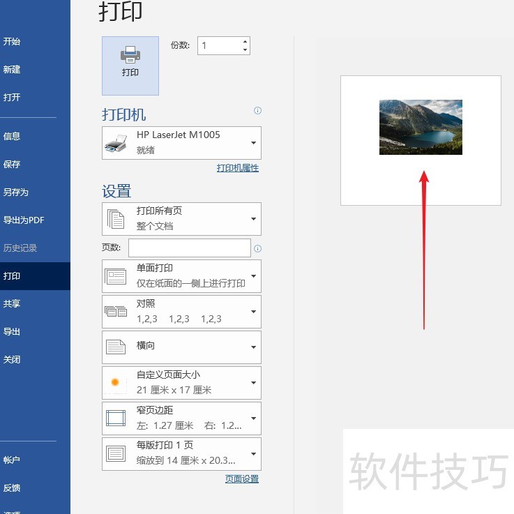 勾选打印Word中创建的图形选项后进行打印,预览区域将显示图片,确保图片可正常打印输出。