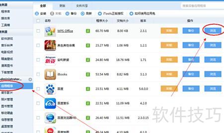 第五步:在iPad的应用程序中找到已安装的WPS Office,点击浏览,进入其安装目录,操作所示。