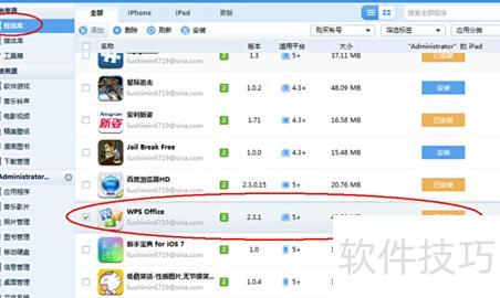 可通过xy苹果助手或iTools在iPad上安装WPS Office应用。