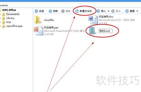 第七步:点击新建文件夹按钮,在iPad中创建并命名一个新文件夹,用于存放导入的Office文件。所示。