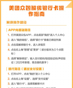 若美团银行卡解绑失败,建议检查支付密码是否正确,或尝试重新登录APP,若仍无法解决,可联系美团客服寻求帮助。