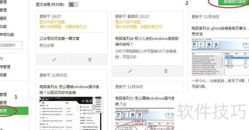 进入素材管理,选择图文素材
