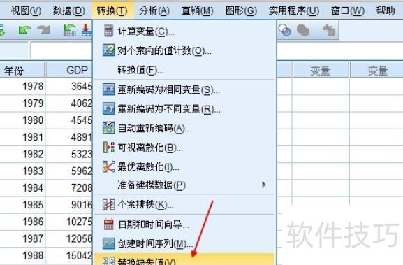 开启转换功能,查找并点击替换缺失值选项。
