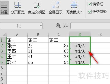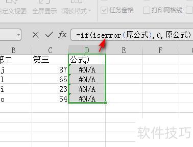 输入公式后,按下Ctrl+回车键,表格中所有N/A将全部被替换为0。