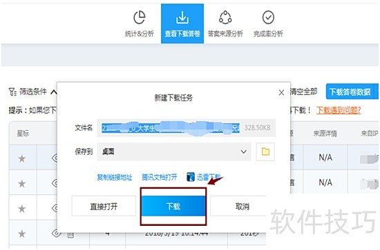 随后在弹出的窗口中选择查看下载答卷并点击确认。