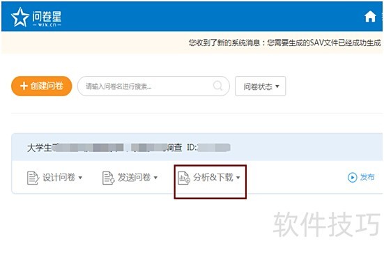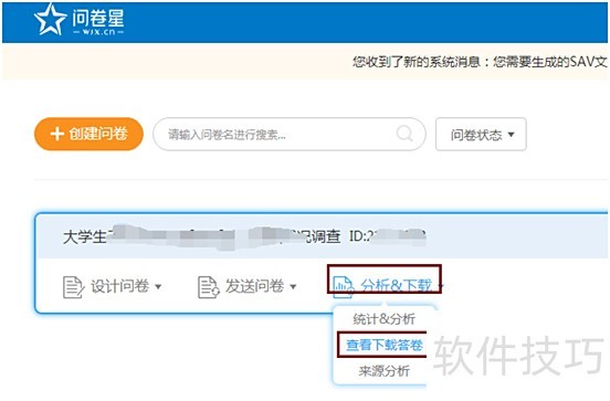 进入问卷星首页后,找到你创建的问卷,点击下方的分析下载选项。
