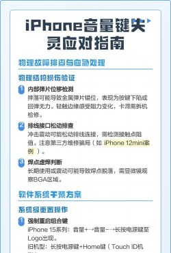 手机音量键失灵可尝试清理按键、检查保护套、重启手机、更新系统或使用第三方应用调节音量。若无效,可能为硬件损坏,建议联系官方售后或专业维修店更换。