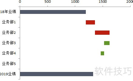 横向瀑布图的制作方法与常规瀑布图相似,区别在于插入的图表类型为堆积条形图,而非堆积柱形图,呈现效果更适用于横向数据展示。